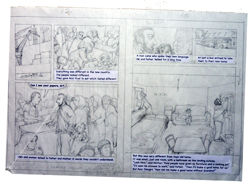Once it has been accepted for publication, and I have a contract, then I begin the next stage, which is to make more detailed drawings of the people and places in the book. I often get my family and friends to model for me as my characters, and draw rooms in their houses, and go out to sketch street scenes and landscapes.